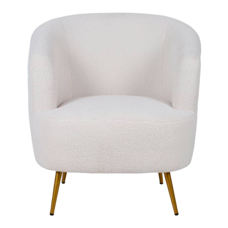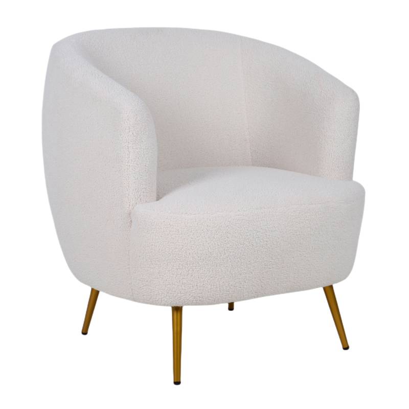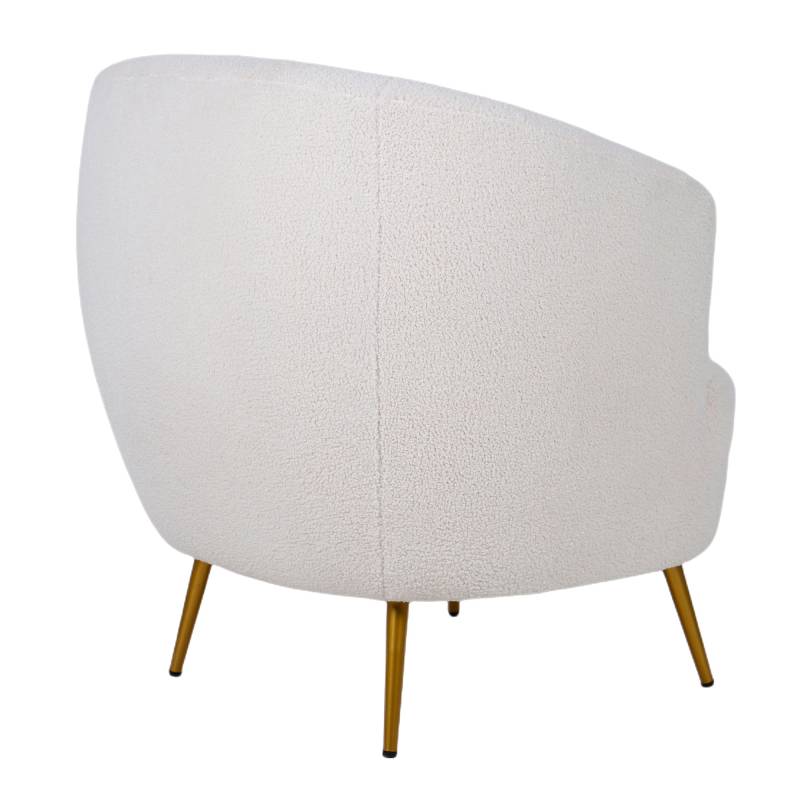 Sillón Boucle Blanco - Con tejido Boucle - Patas de metal - Apoyabrazos