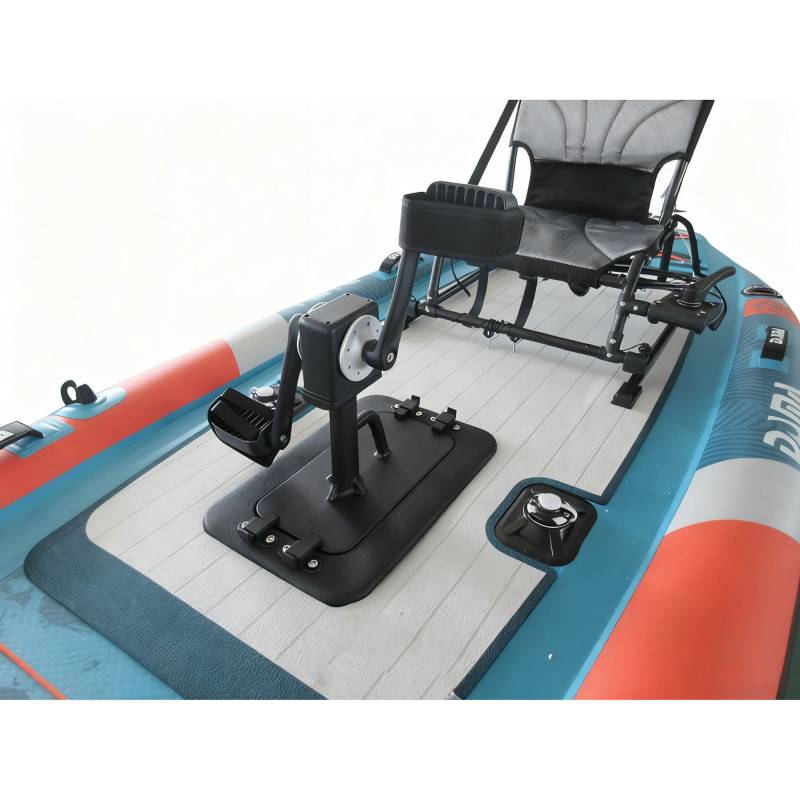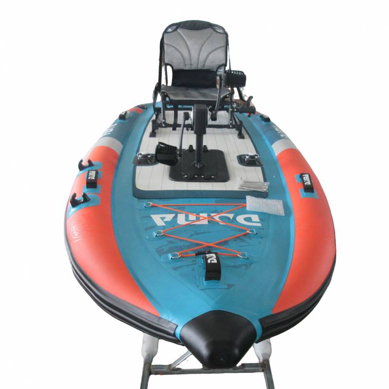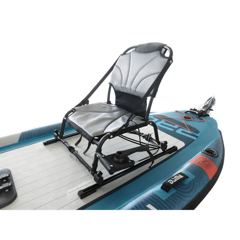 Es una embarcación inflable versátil diseñada para la pesca, con un casco estable, portacañas integrados, un asiento cómodo de respaldo alto y puntos de sujeción para equipo. Es portátil (inflable/plegable) y adecuada tanto para remar como para pescar en lagos, ríos o aguas costeras tranquilas.