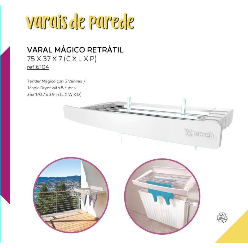 Tender de Pared Maxeb Blanco Optimiza el secado de tu ropa con este práctico tender, diseñado para brindar resistencia y durabilidad. Su estructura cuenta con pintura electrostatica, lo que garantiza una mayor proteccion contra corrosión y efectos climaticos, ideal tanto para exteriores como interiores. - Material resistente y liviano - Pintura electrostática anticorrosiva - Diseño funcional y fácil de trasladar