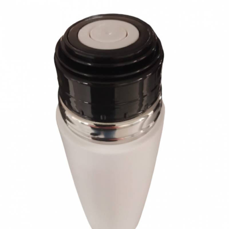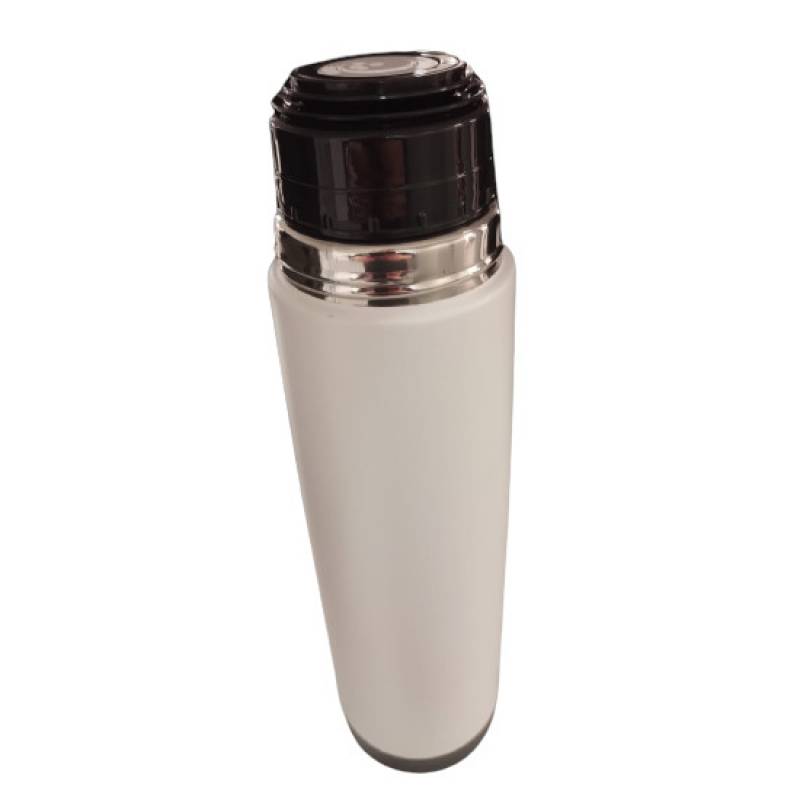 Termo realizado en acero inoxidable 304 con esmalte especial protector. Producto aprobado por el I.N.A.L. para el contacto con alimentos. Colores disponibles: Gris, Blanco, Negro, Rojo, Azul. Medidas: 32 cm x Ø 8,3 cm. Capacidad: 1 Lt. Producto libre de BPA. Tahg.