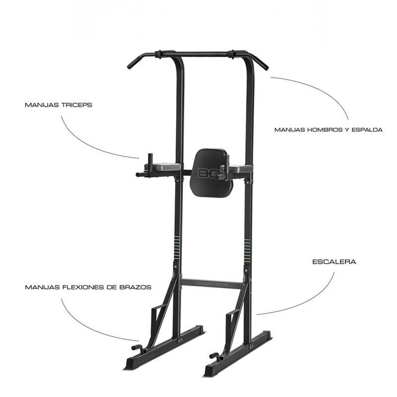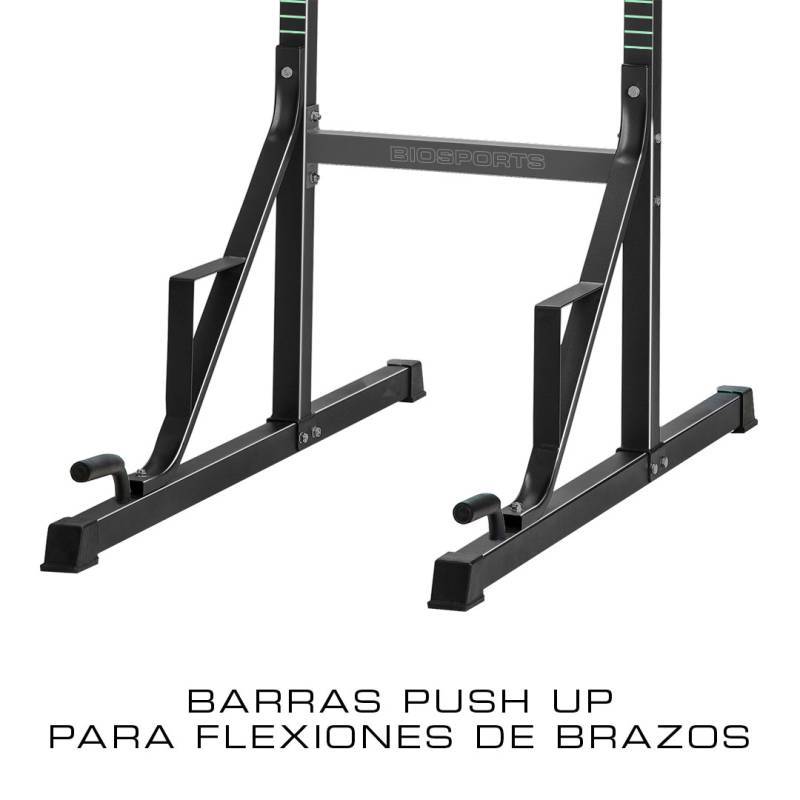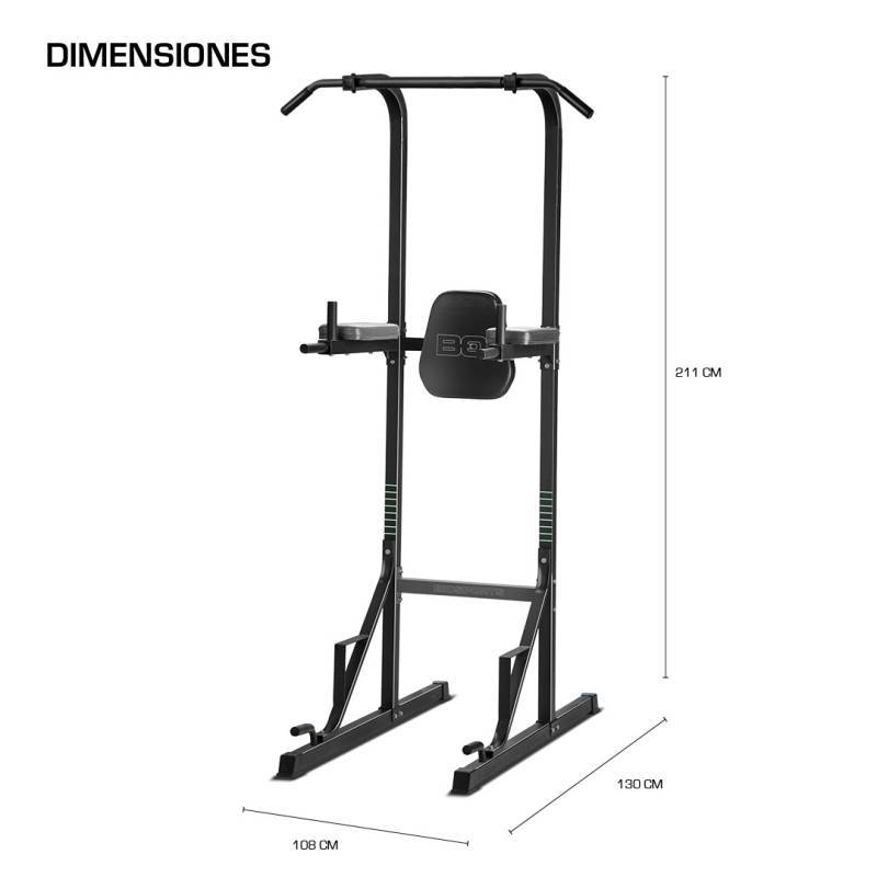 - Incluye Barras de Push-Up: La torre incluye barras de push-up, permitiéndote realizar una variedad de ejercicios de fuerza y resistencia.