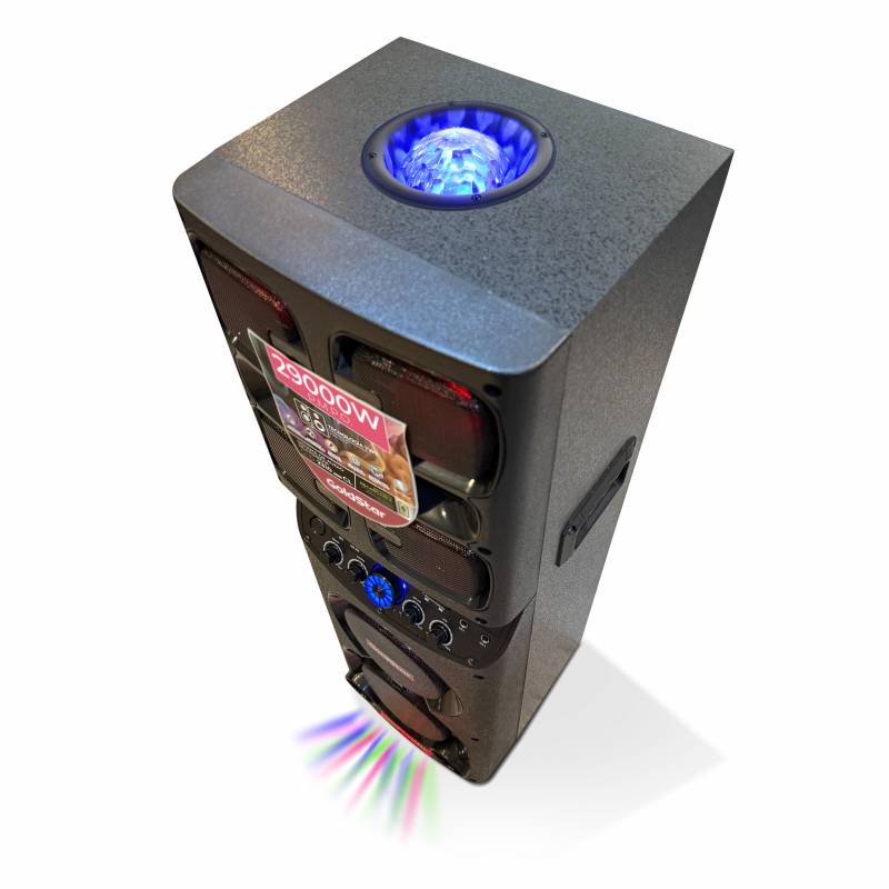 Descubrí la libertad sonora con el sistema GLD-2310CL, equipado con una avanzada batería de litio recargable (12 V / 4500 mAh) que te permite llevar la música a donde quieras, sin necesidad de cables eléctricos. Además, sorprende con luces LED estilo disco en la parte superior, que iluminan y animan cualquier espacio al ritmo de la música.