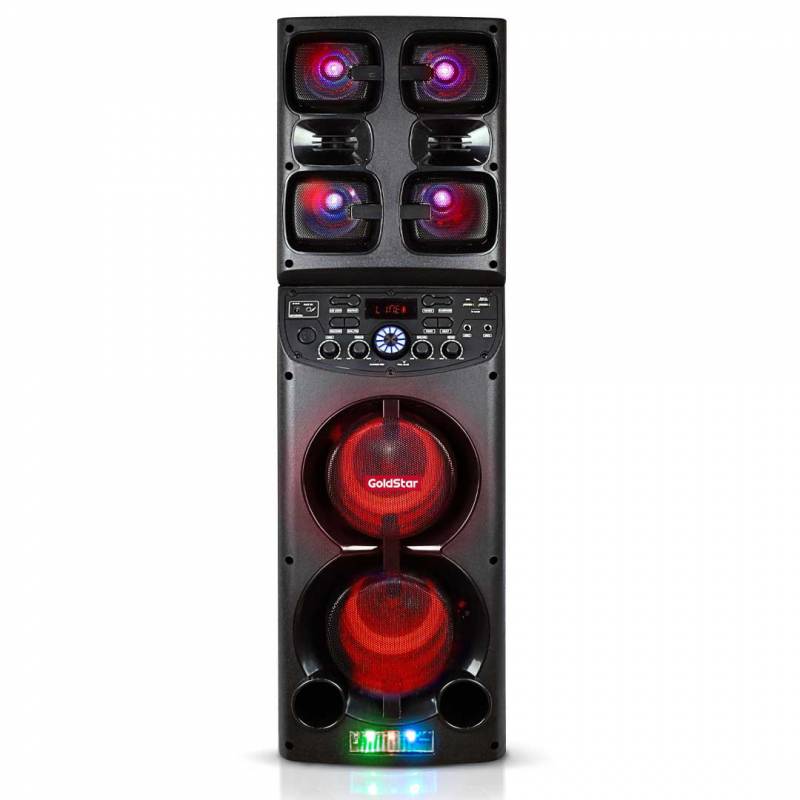 En su interior, cuenta con dos woofers de 6,5", dos tweeters de 3" y display LED, además de modos de ecualización preconfigurados (Pop, Rock, Jazz, Clásico), respuesta de frecuencia amplia, excelente relación señal/ruido e impedancia optimizada.