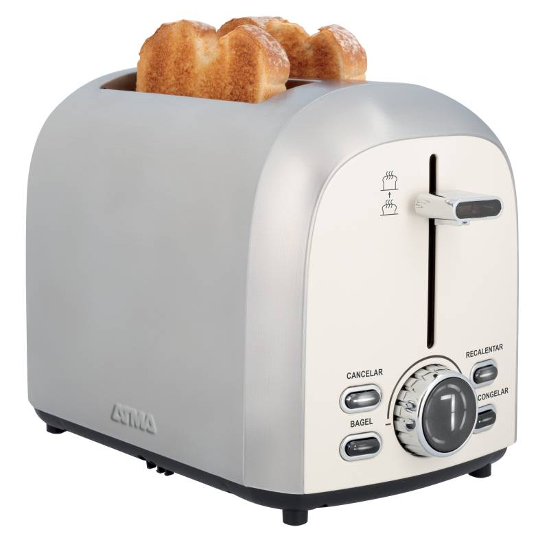 Tostadora de Acero Inoxidable Atma Dos Rebanadas 7 Niveles De Tostado Pantalla Led Para Control De Nivel De Tostado Función Cancelar/Descongelar/Calentar Bandeja Colectora De Migas
