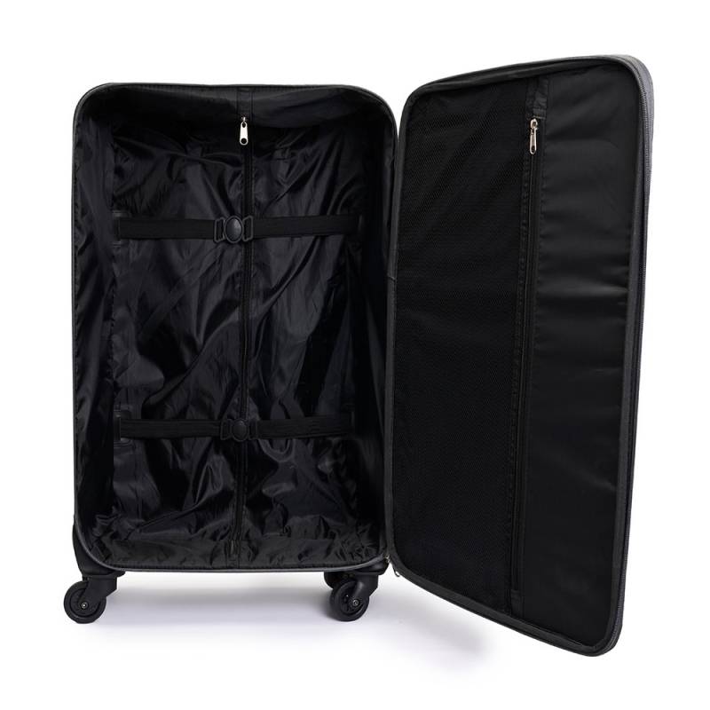 Elegante y funcional, cuenta con 4 ruedas giratorias que facilitan su transporte en cualquier dirección, brindando comodidad y movilidad. Su tirador metálico robusto asegura durabilidad y un manejo suave, ideal para viajeros frecuentes que buscan estilo y practicidad en cada viaje