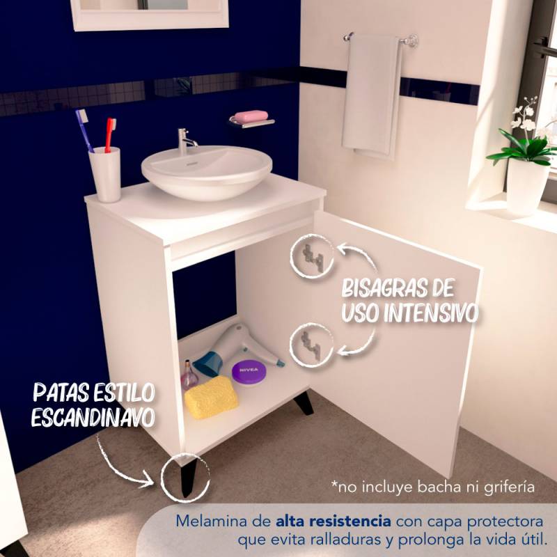 Vanitory ideal para aquellos que buscan funcionalidad y estilo en su baño. Con su diseño moderno y elegante, este vanitory se adapta a cualquier tipo de decoración. Cuenta con un espacio de guardado para toallas, papel higiénico y todo tipo de artículos de higiene. No incluye bacha, ni grifería.