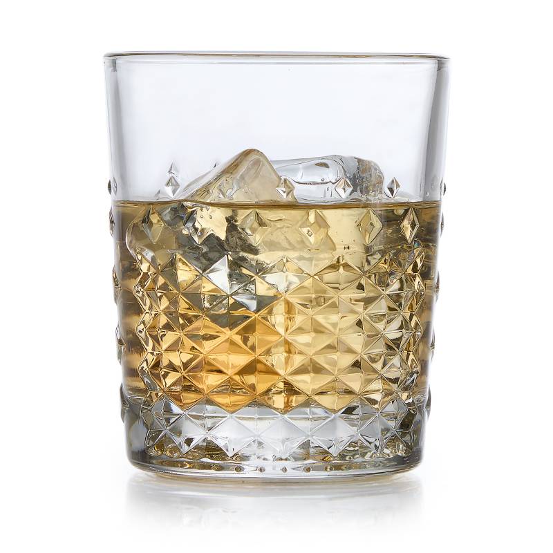 Vaso bajo ocular de vidrio con detalles labrados en los laterales. Capacidad 341 ml